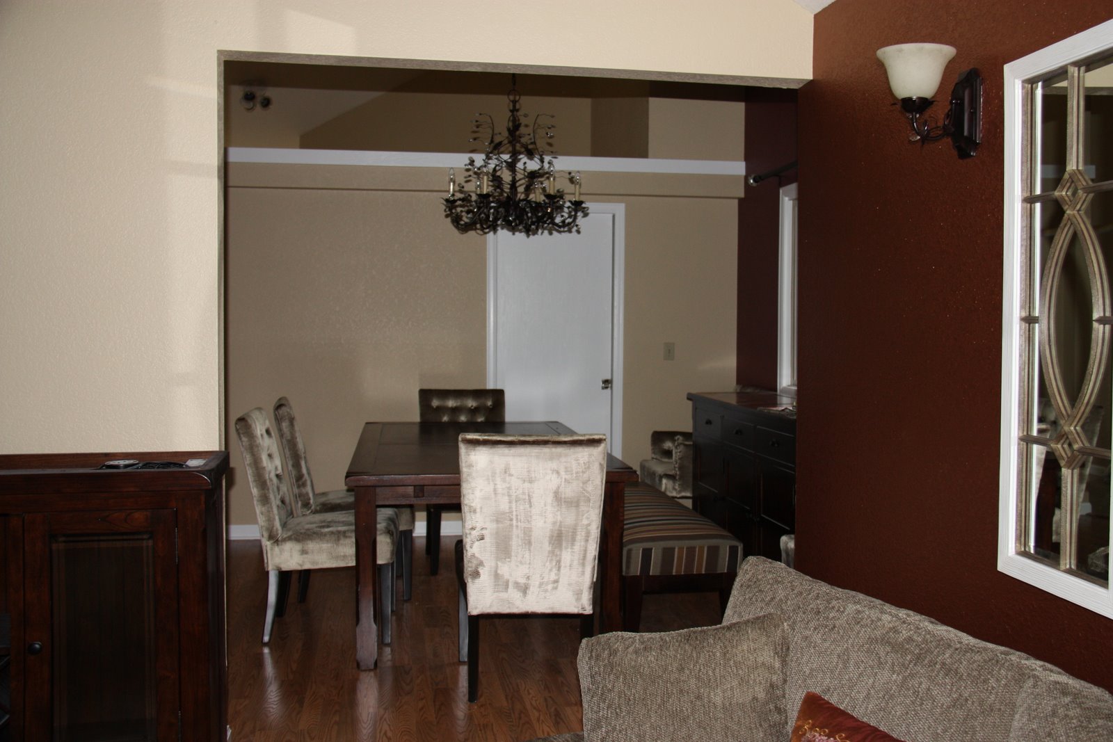 The mirrors were one of my few "finds" of the whole process. I love them. My mom 's neighbor was moving and gave us the piano-yay! It desperately needs to be tuned, but it works.